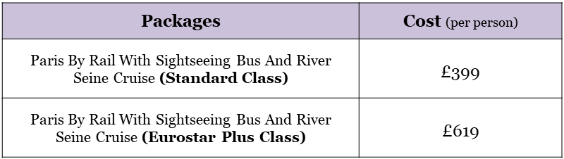 You begin your Parisian adventure at London St Pancras International station, where you will board the Eurostar. In a little over two hours, you will arrive at Paris Gare du Nord Station. Travel in Standard or Plus Class on Eurostar (optional Upgrade).